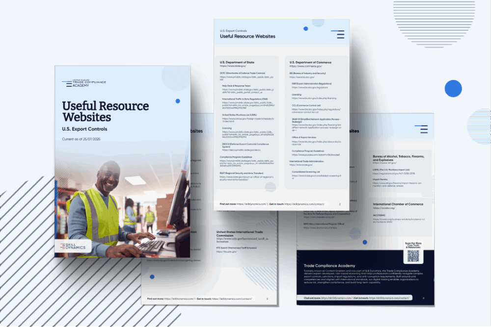 This curated list of key government and regulatory websites puts essential compliance resources at your fingertips. You'll find direct links to BIS, DDTC, OFAC, CBP, and other agencies – along with portals for denied party screening, license applications, and advisory opinions. It's an ideal tool for trade compliance professionals who need fast, reliable access to the most up-to-date official guidance, forms, and contact points.